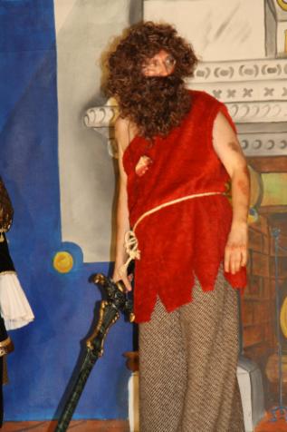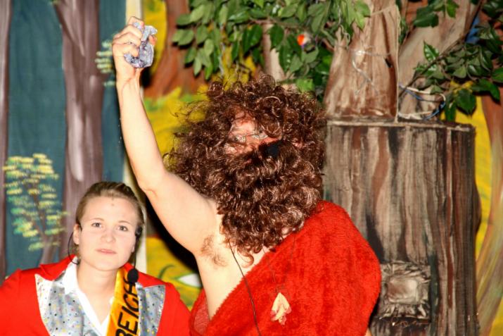 Während Anna Sophia mit dem Waldelfen-Quintett das Publikum mit einem märchenhaften Tanz bezauberte, durfte ich als einer der beiden Riesen den Königshof und die Zuschauer das Fürchten lehren.